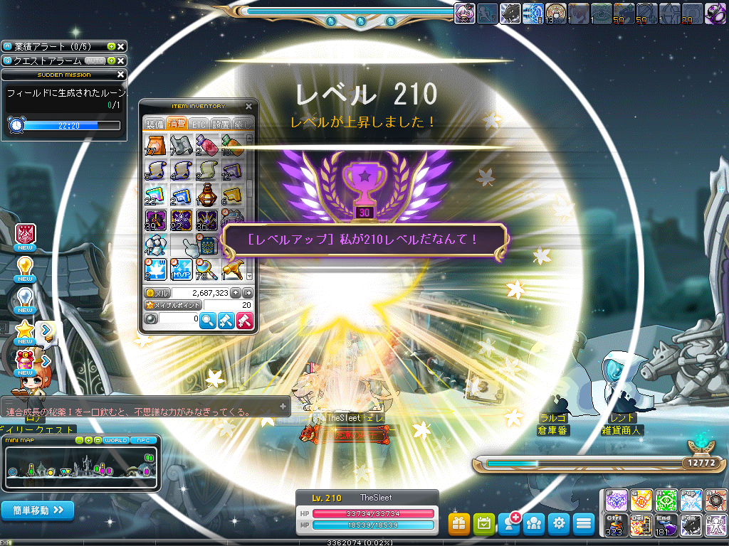 このレベルくらいになってくるとバーニング鯖の恩恵が大きくなってきますね。