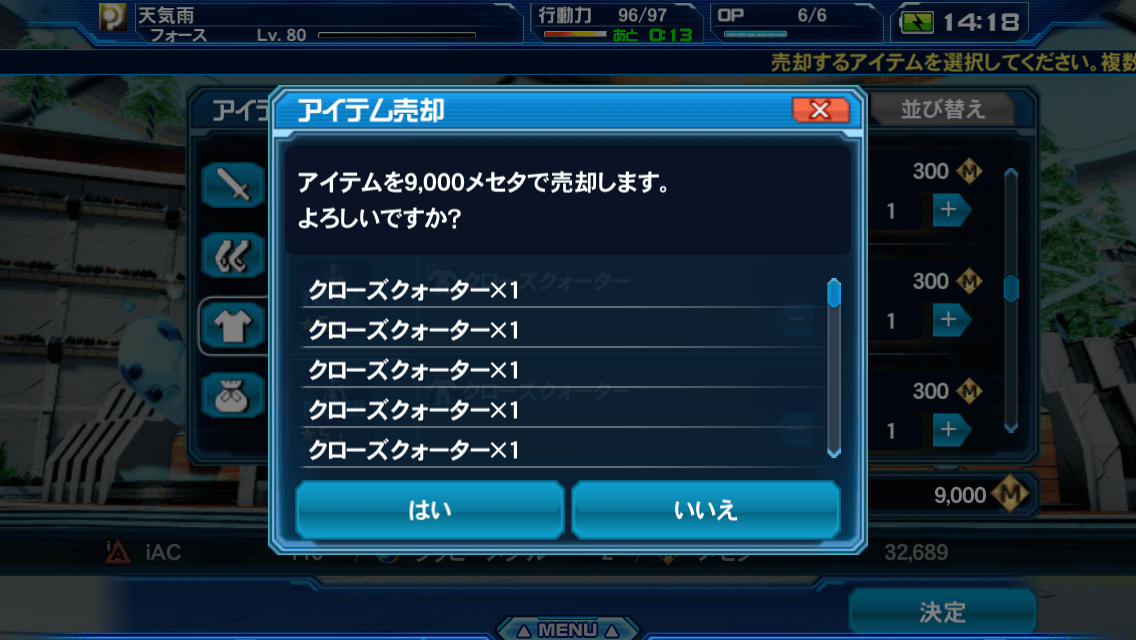 後は緊急のボスが15000メセタを2つ落としてくれるのを祈ることだけが私にできるすべてです。