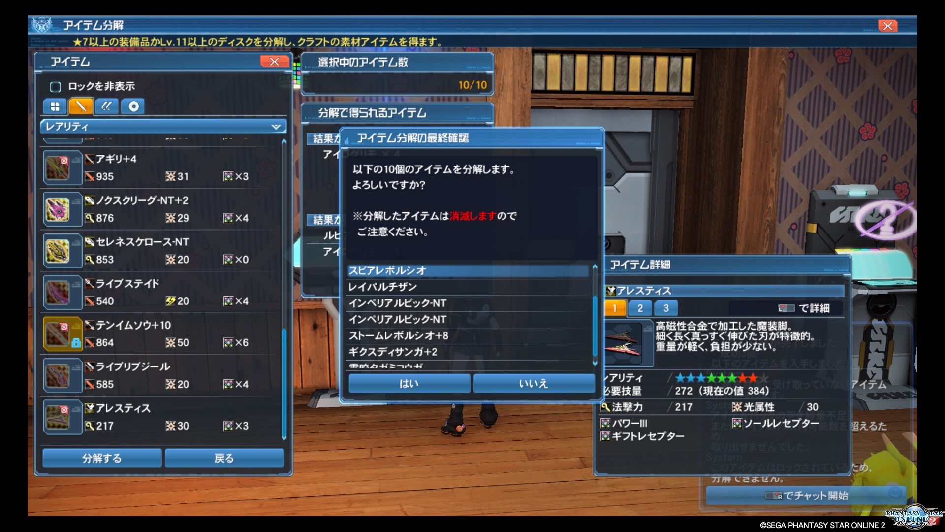 久しぶりに別鯖のキャラを稼働、とはいえ武器を分解しただけですが。