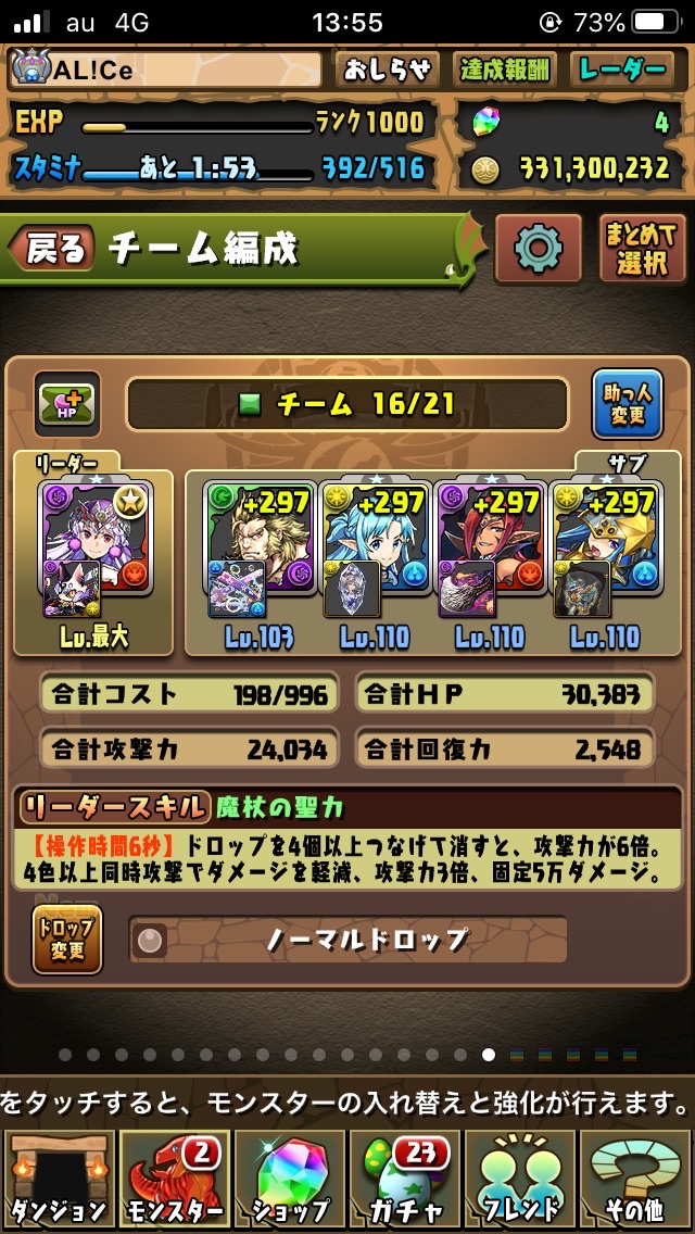 マドゥは無効貫通をする場合のコンボ保険、アスナがいるのでぶっちゃけライザーは不要です(風神がいれば水究極にすることで全色揃えられます)