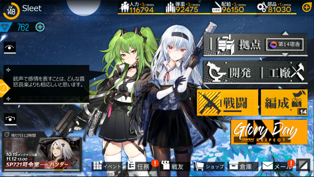 さらにはドルフロもGlory Dayとかいう神イベントが復刻したので、、、
