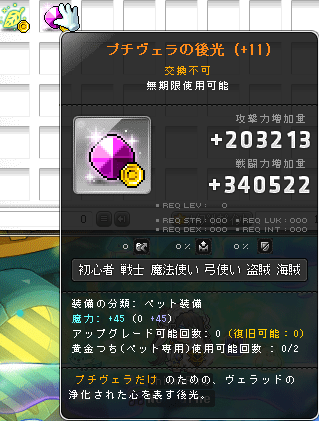 オベロン装備も魔力で作っていてプチヴェラの後光も一旦魔力で作っています。